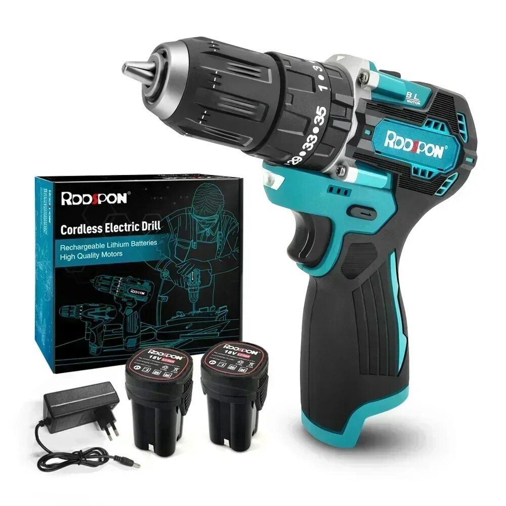 Бесщеточная дрель RDDSPON 18 В 120 Н/м, высокоскоростная перезаряжаемая литиевая дрель 10 мм с аккумулятором, бытовые электроинструменты с высоким крутящим моментом, 2pc Batteries: сравнение цен, характеристики, фото, актуальное наличие и цены.