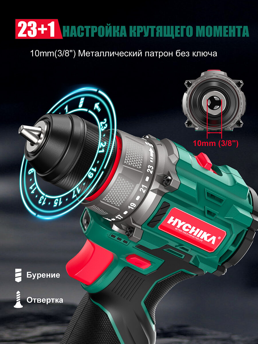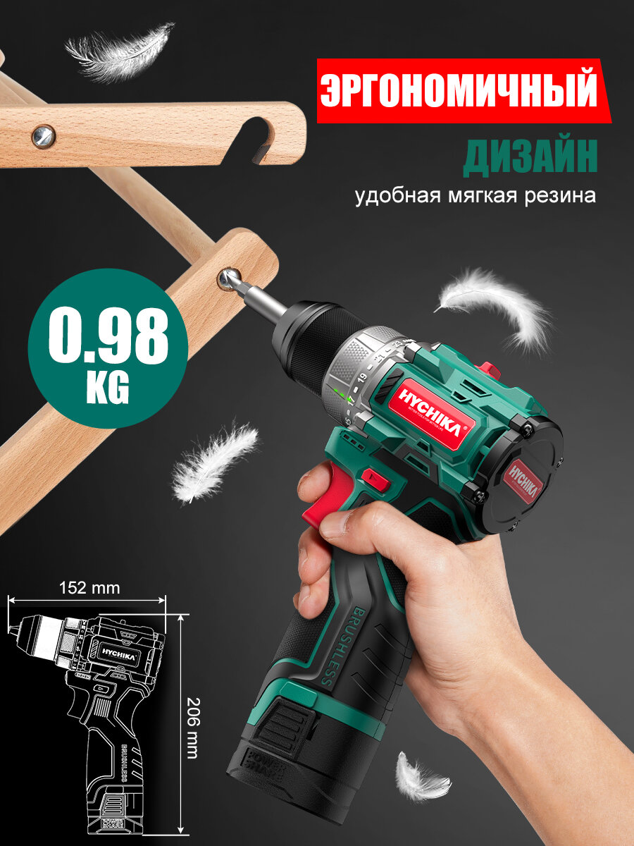 Купить Бесщеточная электрическая дрель HYCHIKA 16,8 В, крутящий момент 45 Нм, 1500 об/мин. с доставкой по всей России.