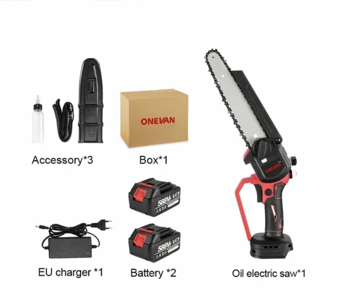 | Комплект поставки | Цепная пила АКБ-2 шт Зарядное устройство Шина Цепь Отвертка |