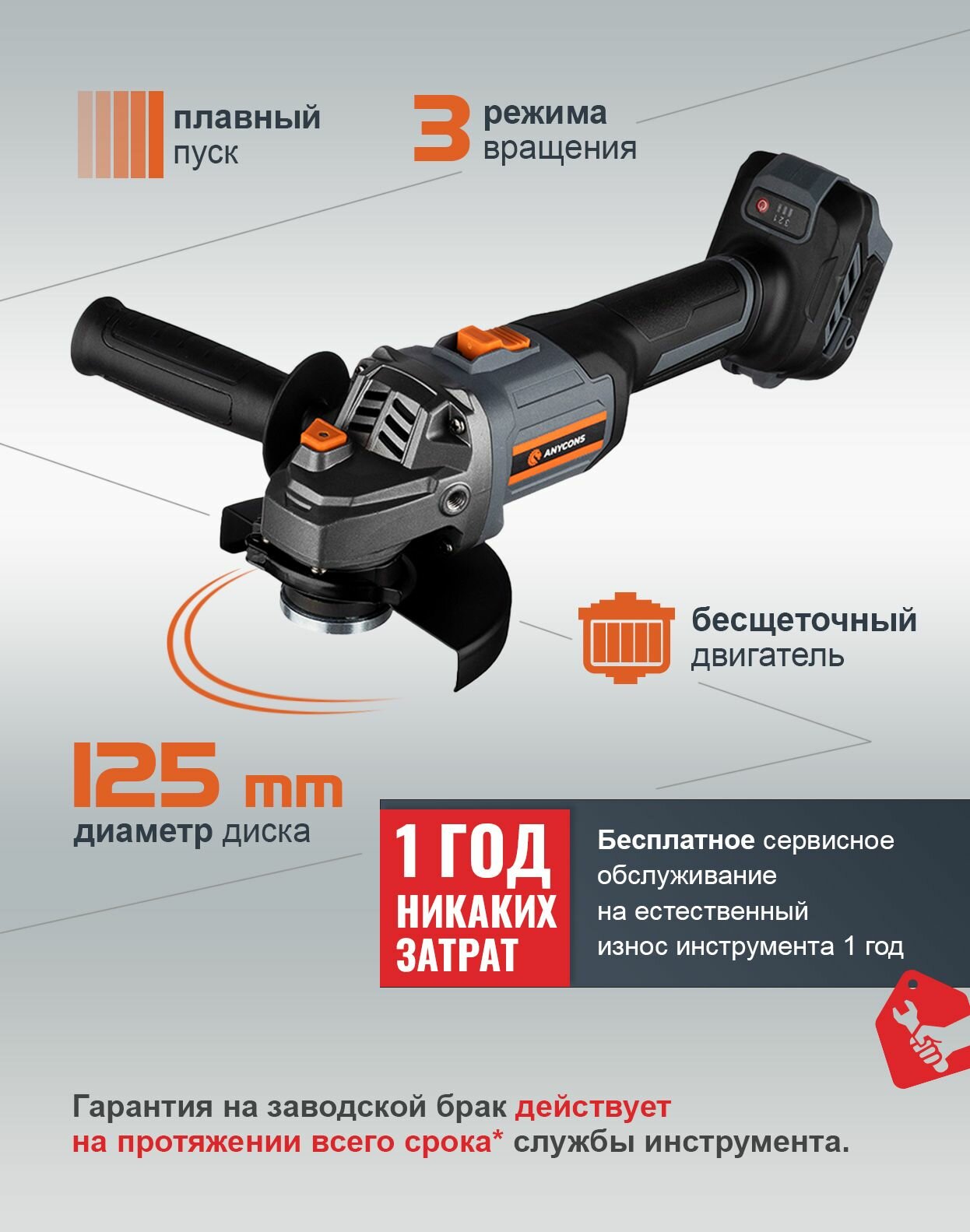 Купить Бесщеточная УШМ Anycons, 125м, 21В, 8500 об/мин, без акб, JM-1250 с доставкой по всей России. Бесщеточная УШМ Anycons, 125м, 21В, 8500 об/мин, без акб, JM-1250: сравнение цен, характеристики, фото, актуальное наличие и цены.