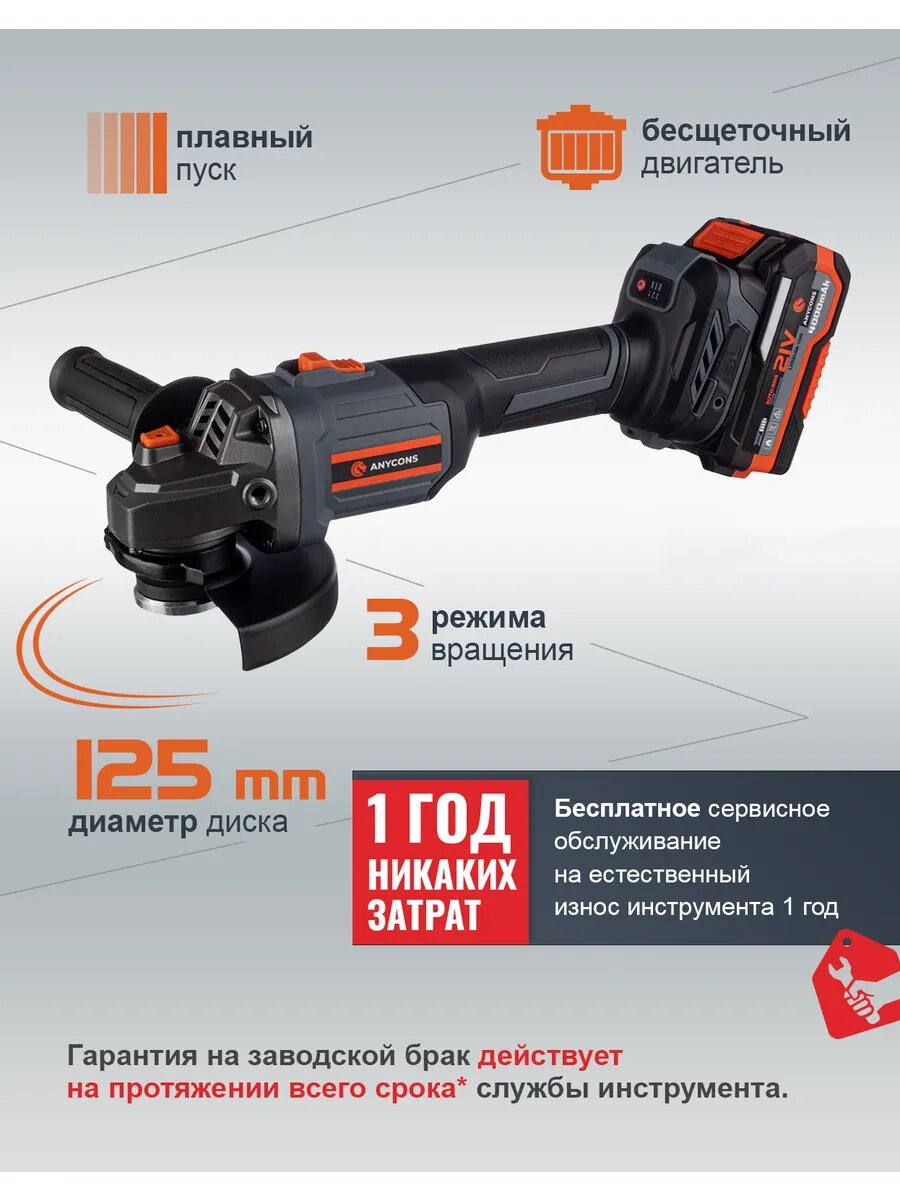 Купить Бесщеточная УШМ Anycons, 125м, 21В, 8500 об/мин, 1 акб, JM-1251 с доставкой по всей России. Бесщеточная УШМ Anycons, 125м, 21В, 8500 об/мин, 1 акб, JM-1251: сравнение цен, характеристики, фото, актуальное наличие и цены.
