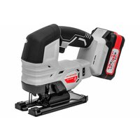 | Комплектация | •Аккумуляторный лобзик. •Направляющая линейка. •Специальный ключ. •Картонная упаковка. •Инструкция по эксплуатации и безопасности. •Гарантийный талон. •Список сервисных центров. •Поставляется без аккумулятора и зарядного устройства! |