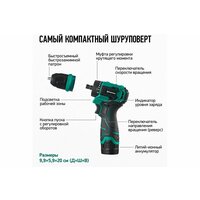Бесщеточный аккумуляторный шуруповерт Rokodil Twist 2 Air 12 в, 36 нм, 2 ач, 1400 об/мин 1 АКБ 1047196