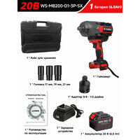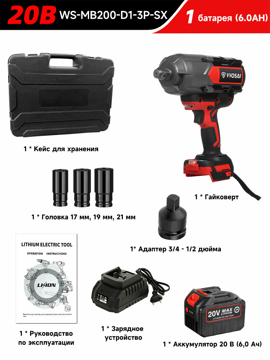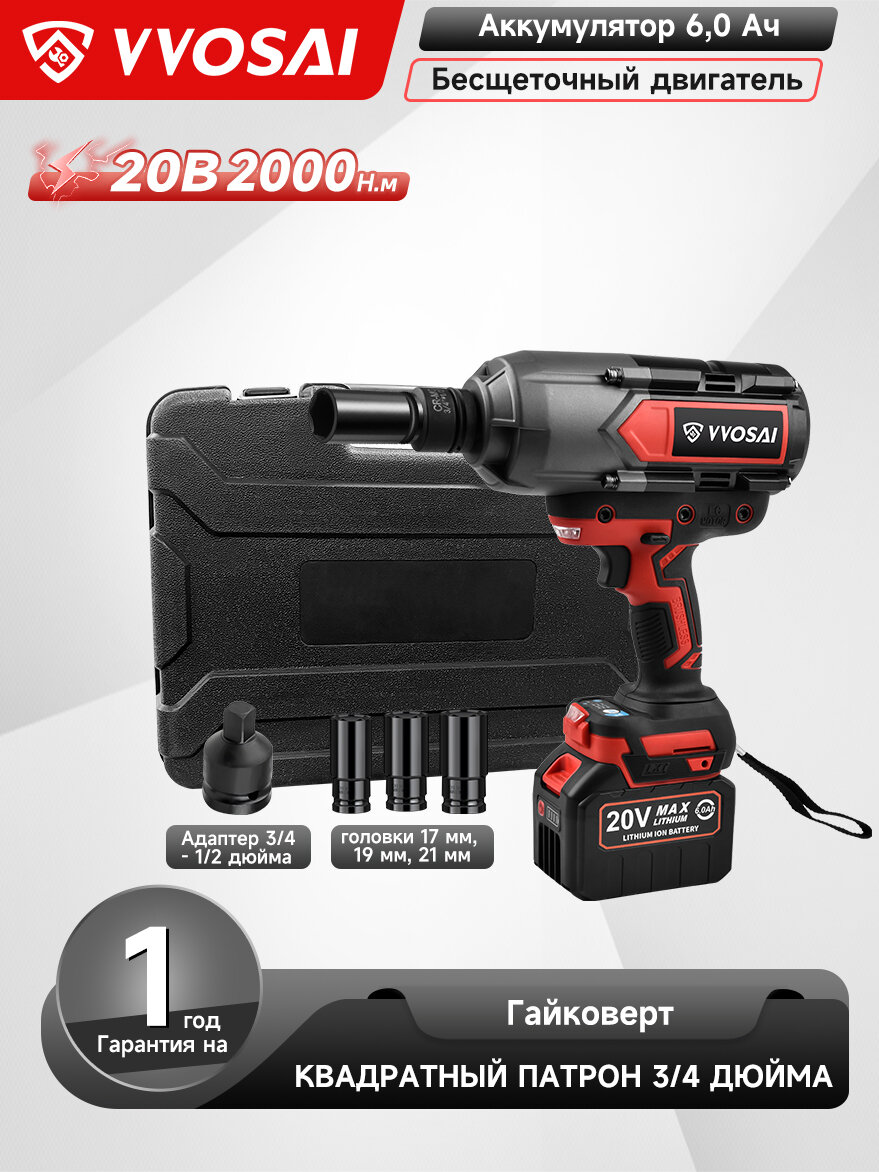 Бесщеточный электрический ударный гайковерт, 2000 Н·м, в комплекте с 1 аккумулятором 20 В, 6,0 А·ч, пластиковый кейс: сравнение цен, характеристики, фото, актуальное наличие и цены.