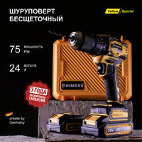 Бесщеточный шуруповерт HIMERS DF75Y-BL аккумуляторный 24V, 2 АКБ по 3 А. ч, 75 Н. м, 13мм патрон, кейс: сравнение цен, характеристики, фото, актуальное наличие и цены.