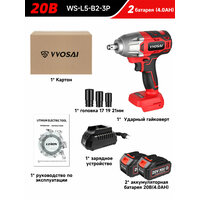 Купить Бесщеточный ударный гайковерт VVOSAI WS-L5-B2-3P, 20 В 600 Нм, 2аккумулятор 4,0 Ач, торцевой ключ с доставкой по всей России.