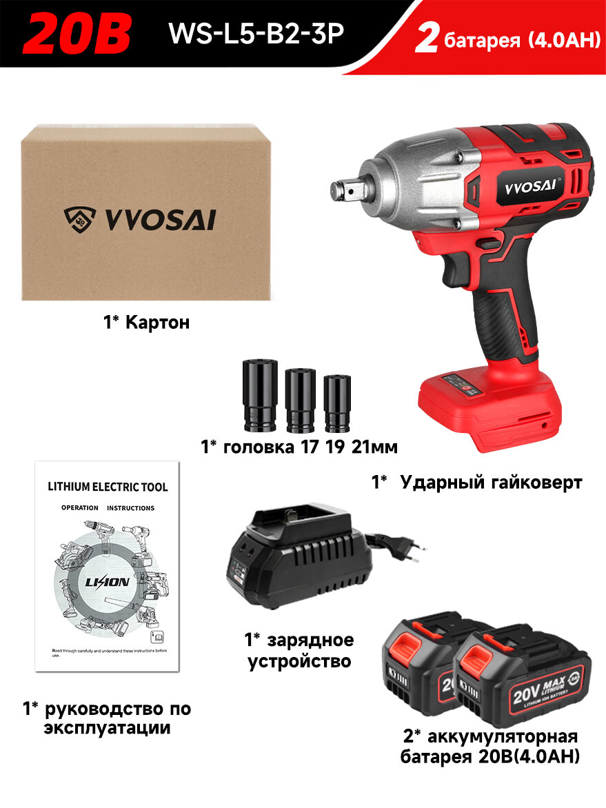 Бесщеточный ударный гайковерт VVOSAI WS-L5-B2-3P, 20 В 600 Нм, 2аккумулятор 4,0 Ач, торцевой ключ: сравнение цен, характеристики, фото, актуальное наличие и цены.