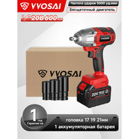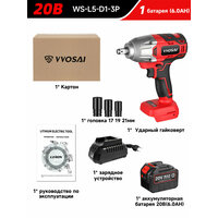 Купить Бесщеточный ударный гайковерт VVOSAI WS-L5-D1-3P, 20 В 600 Нм, 1аккумулятор 6,0 Ач, торцевой ключ с доставкой по всей России.