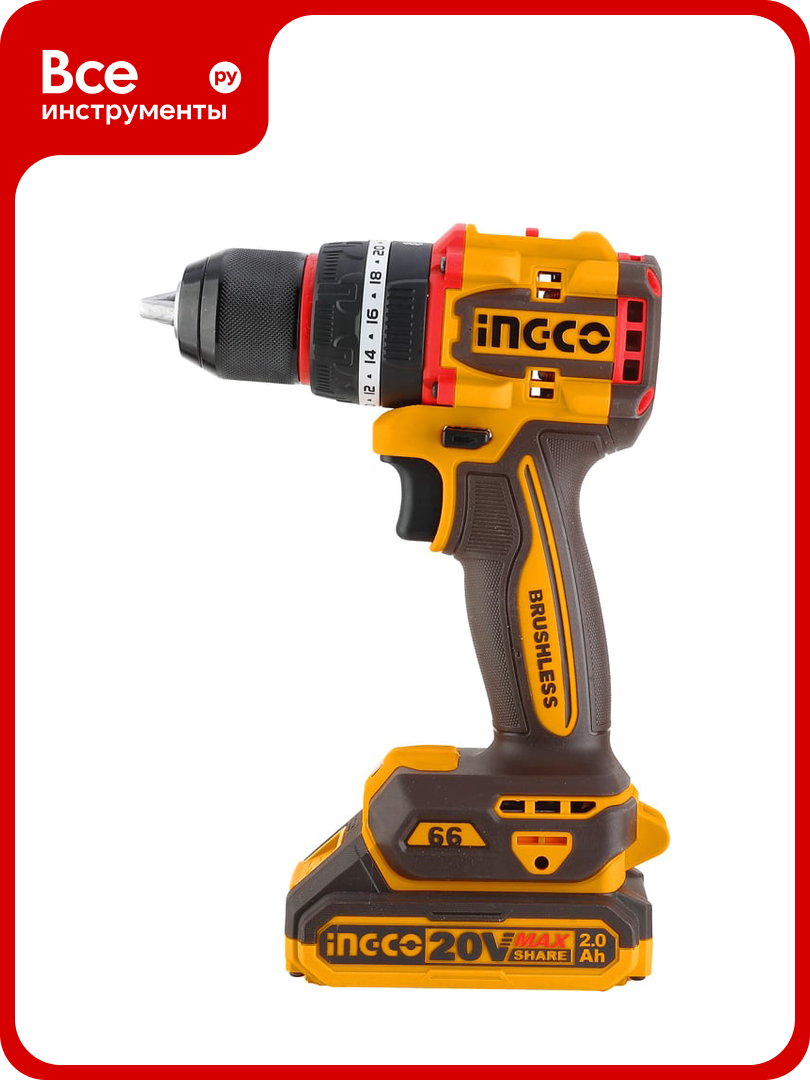 Купить Бесщеточный ударный шуруповерт INGCO Li-ion 20В, 66 Нм INDUSTRIAL CIDLI206681 с доставкой по всей России.