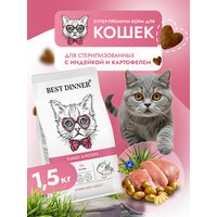 Корм сухой для стерилизованных кошек супер премиум класса с индейкой и картошкой при чувствительном пищеварении и аллергии 1,5кг Best Dinner (Бест Диннер)