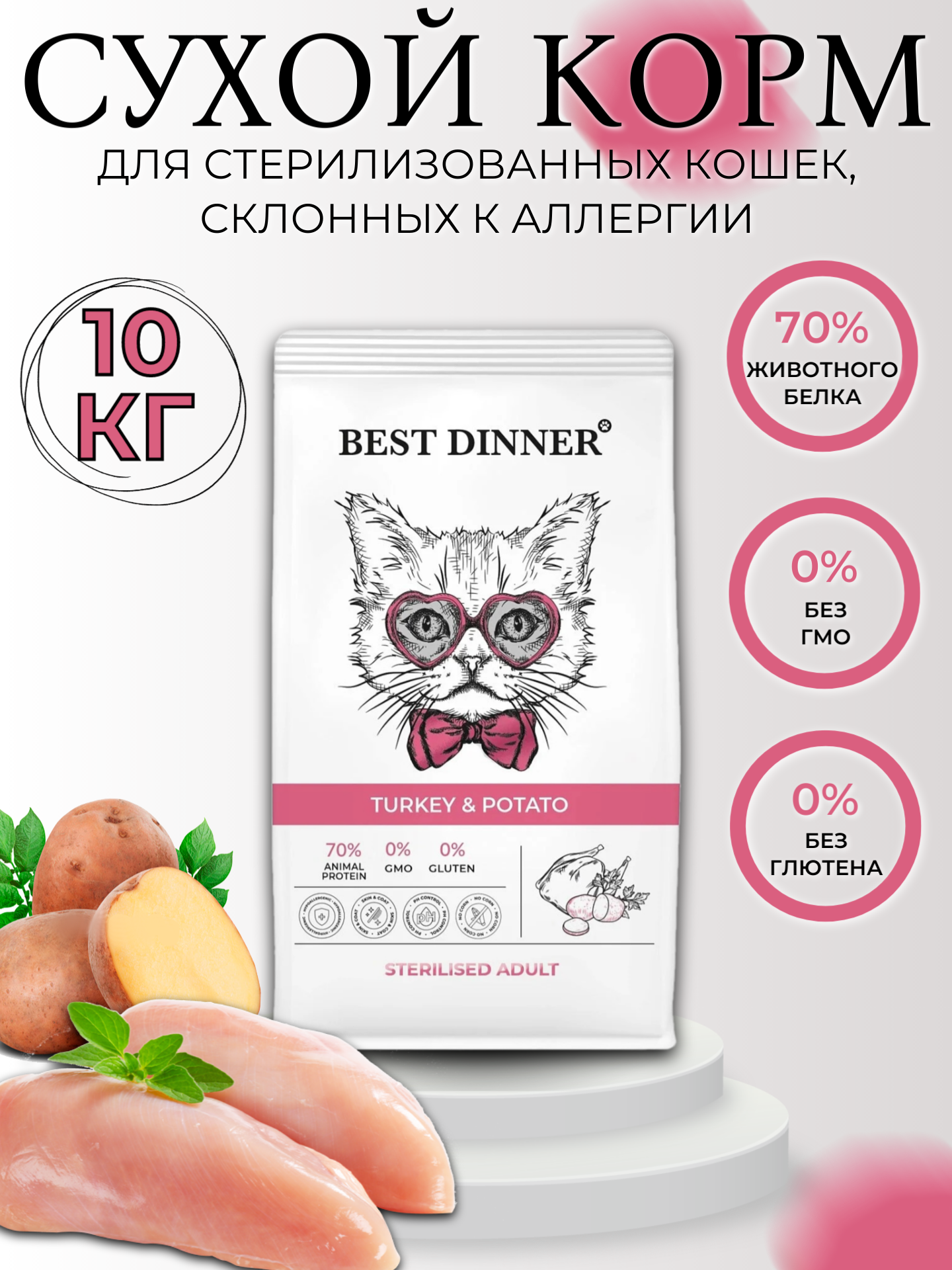 Купить Best Dinner Adult Sterilised Turkey&Potato Сухой корм для стерилизованных кошек, склонных к аллергии, Индейка и Картофель 10кг с доставкой по всей России.