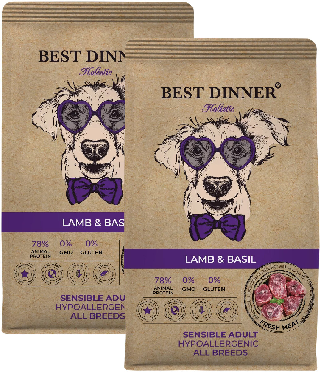 BEST DINNER HOLISTIC DOG ADULT MEDIUM & MAXI SENSIBLE для собак с чувствительным пищеварением с ягненком и базиликом (12 + 12 кг): сравнение цен, характеристики, фото, актуальное наличие и цены.