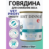 Консервы Best Dinner Vet Profi Obesity, для собак, для снижения избыточной массы, говядина 12шт х 340г