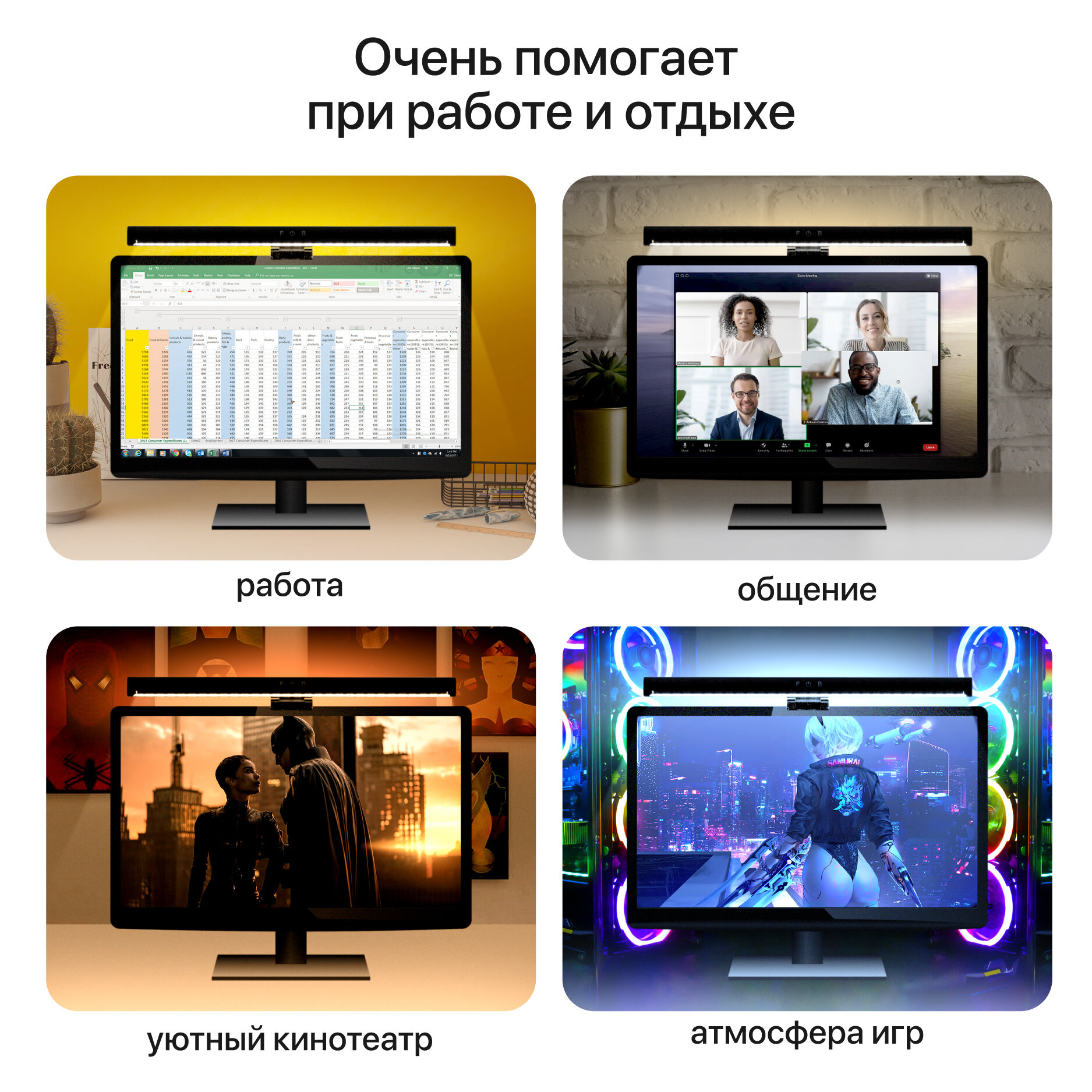 | Дополнительная информация | Лампа для экрана монитора осветит клавиатуру и зону рабочего стола перед экраном. Светильник формирует бестеневое освещение, которое при длительной работе не создает дискомфорта и не ослепляет яркостью. Лампу можно подключить к компьютеру или ноутбуку, и она будет автоматически включаться вместе с ним. |