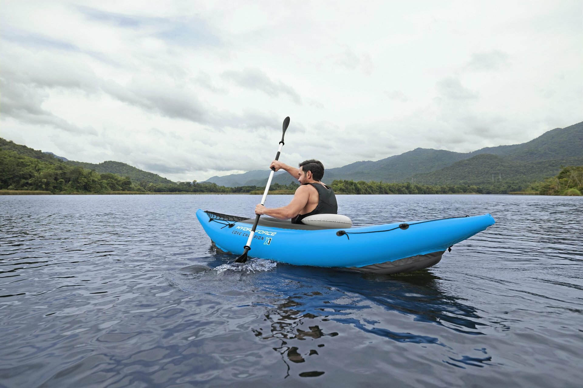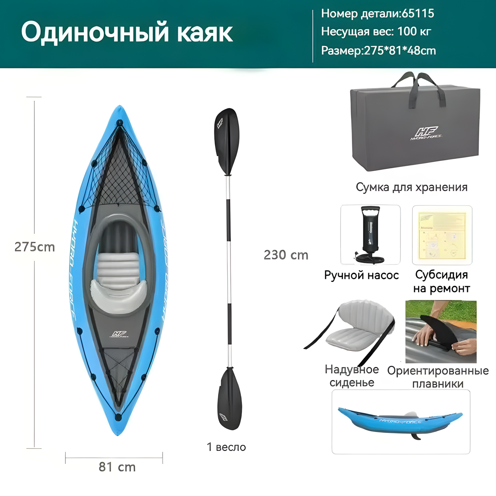 Bestway Каяк 275х81 см, одноместный, армированный ПВХ, грузоподъемность 100кг, с насосом, веслами, сиденьем, синий: сравнение цен, характеристики, фото, актуальное наличие и цены.