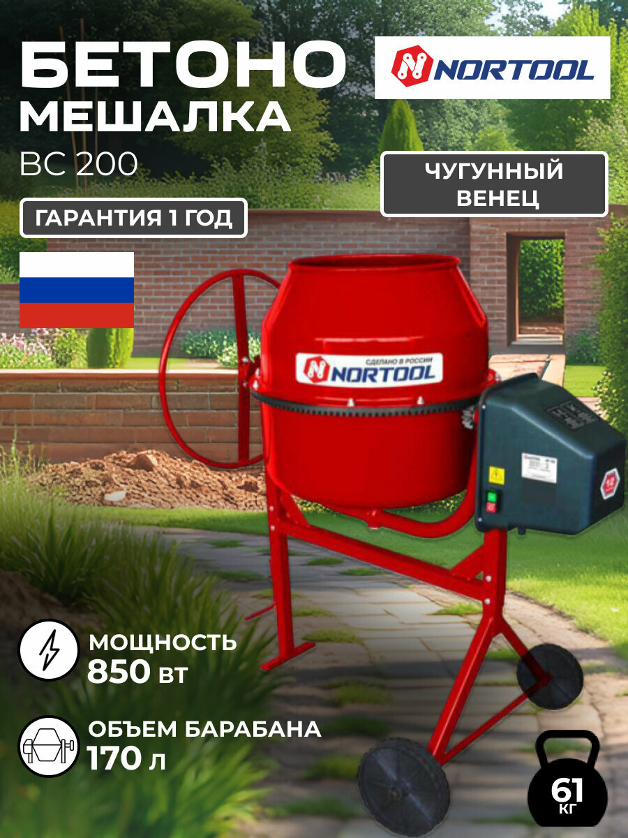 Купить Бетономешалка Nortool BC 200, чугунный венец, порошковая окраска с доставкой по всей России. Бетономешалка Nortool BC 200, чугунный венец, порошковая окраска: сравнение цен, характеристики, фото, актуальное наличие и цены.