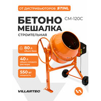 Купить Бетономешалка строительная VILLARTEC СМ-120С (бак 98л/40л, чугунный венец, рычаг) с доставкой по всей России.