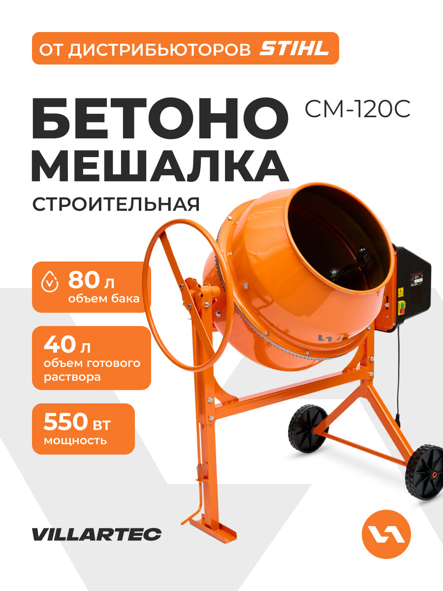 Бетономешалка строительная VILLARTEC СМ-120С (бак 98л/40л, чугунный венец, рычаг): сравнение цен, характеристики, фото, актуальное наличие и цены.