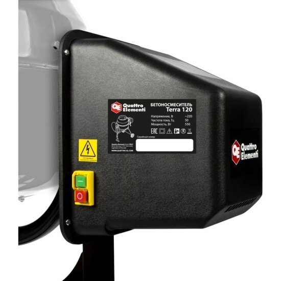 Бетоносмеситель Quattro Elementi Terra 120 (550 Вт, 120л, 27об/м, замес 40л, чугунный венец): сравнение цен, характеристики, фото, актуальное наличие и цены.
