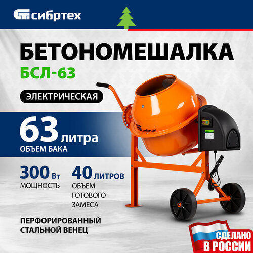 Бетономешалка электрическая Сибртех БСЛ-63, объем 63 л, 300 Вт, стальной перфорированный венец, 95469: сравнение цен, характеристики, фото, актуальное наличие и цены.