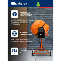 Бетоносмеситель Сибртех БСН-200П 95519 мощностью 800 Вт предназначен для приготовления бетонных смесей и штукатурных растворов. Допускается использование крупнозернистых заполнителей с фракциями размером до 40 мм. Объем бака составляет 200 л, за один замес можно получить до 96 л готовой смеси. Время замешивания не превышает 2 минут, что позволяет избежать длительных перерывов в работе. Бетоносмеситель используется для проведения строительных работ небольшого объема.
