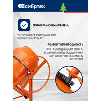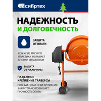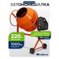 Двигатель мощностью 1000 Вт обеспечивает высокую производительность, при этом не создает значительной нагрузки на электросеть. Бетоносмеситель пригодится для проведения строительных работ небольшого объема.