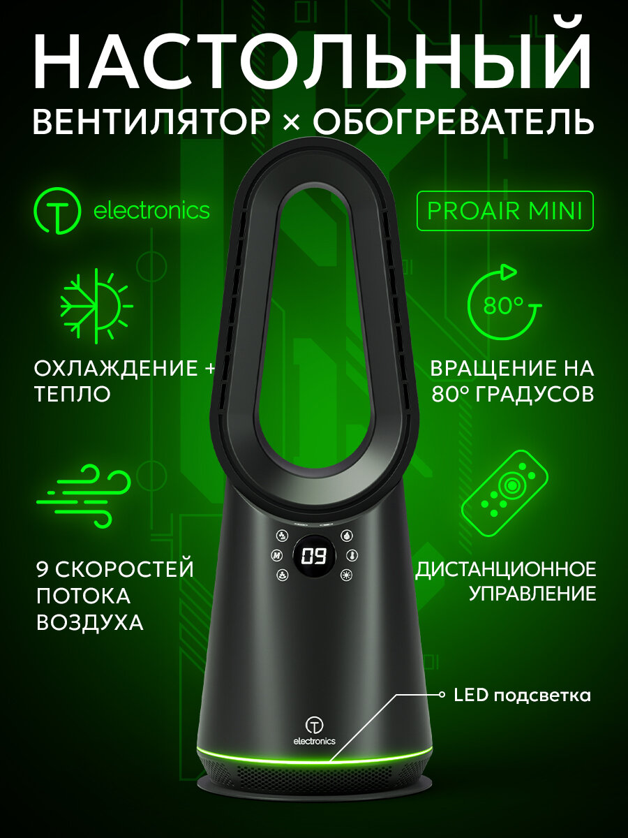 Безлопастной вентилятор Titan Electronics, настольный, 9 уровней скорости, таймер, 20м², черный: сравнение цен, характеристики, фото, актуальное наличие и цены.