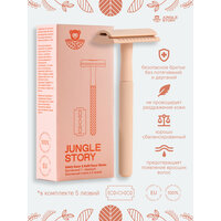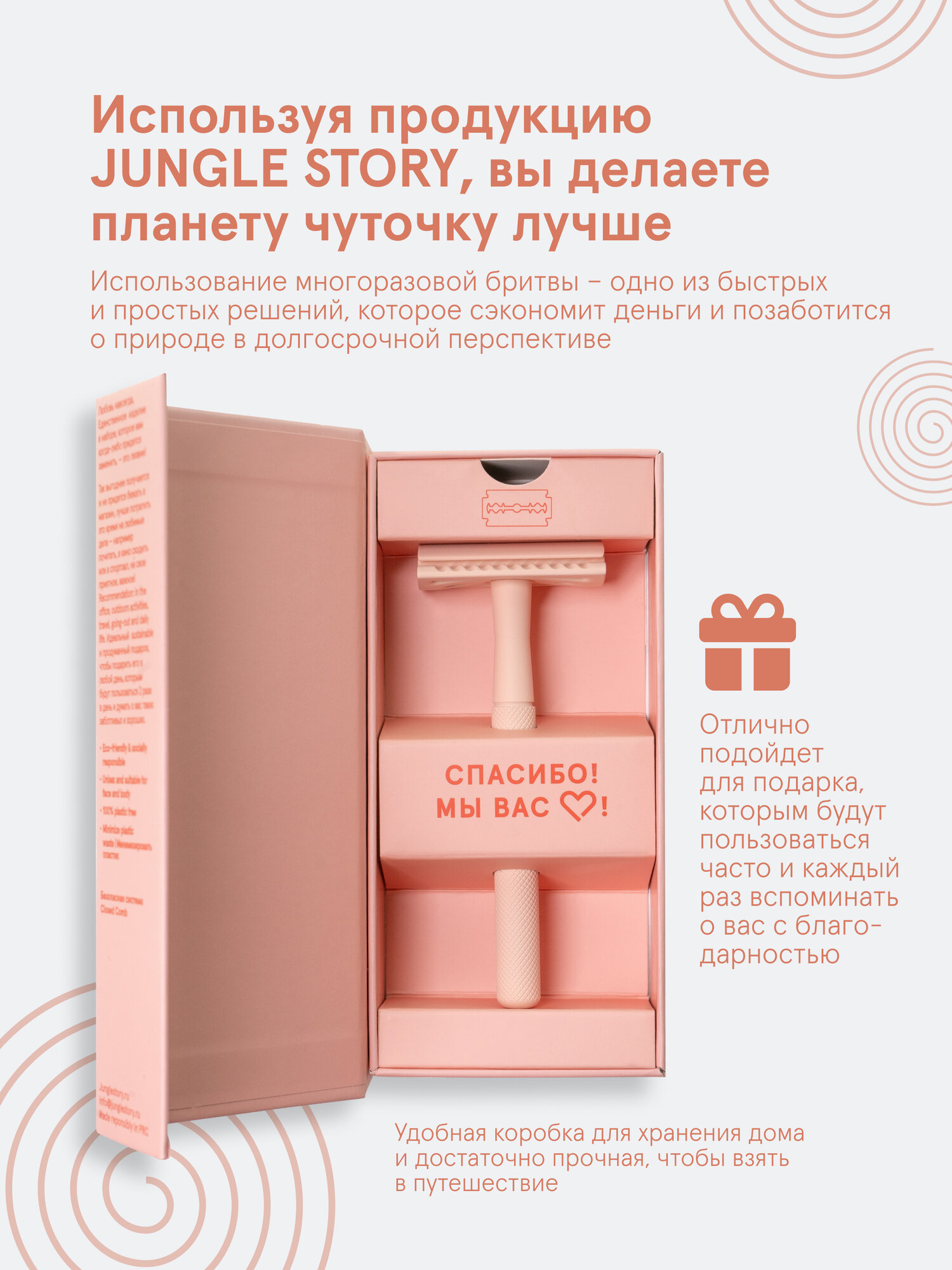 Безопасный бритвенный T-образный станок Jungle Story Розовый в подарочной картонной коробке на магните с 5 сменными лезвиями.