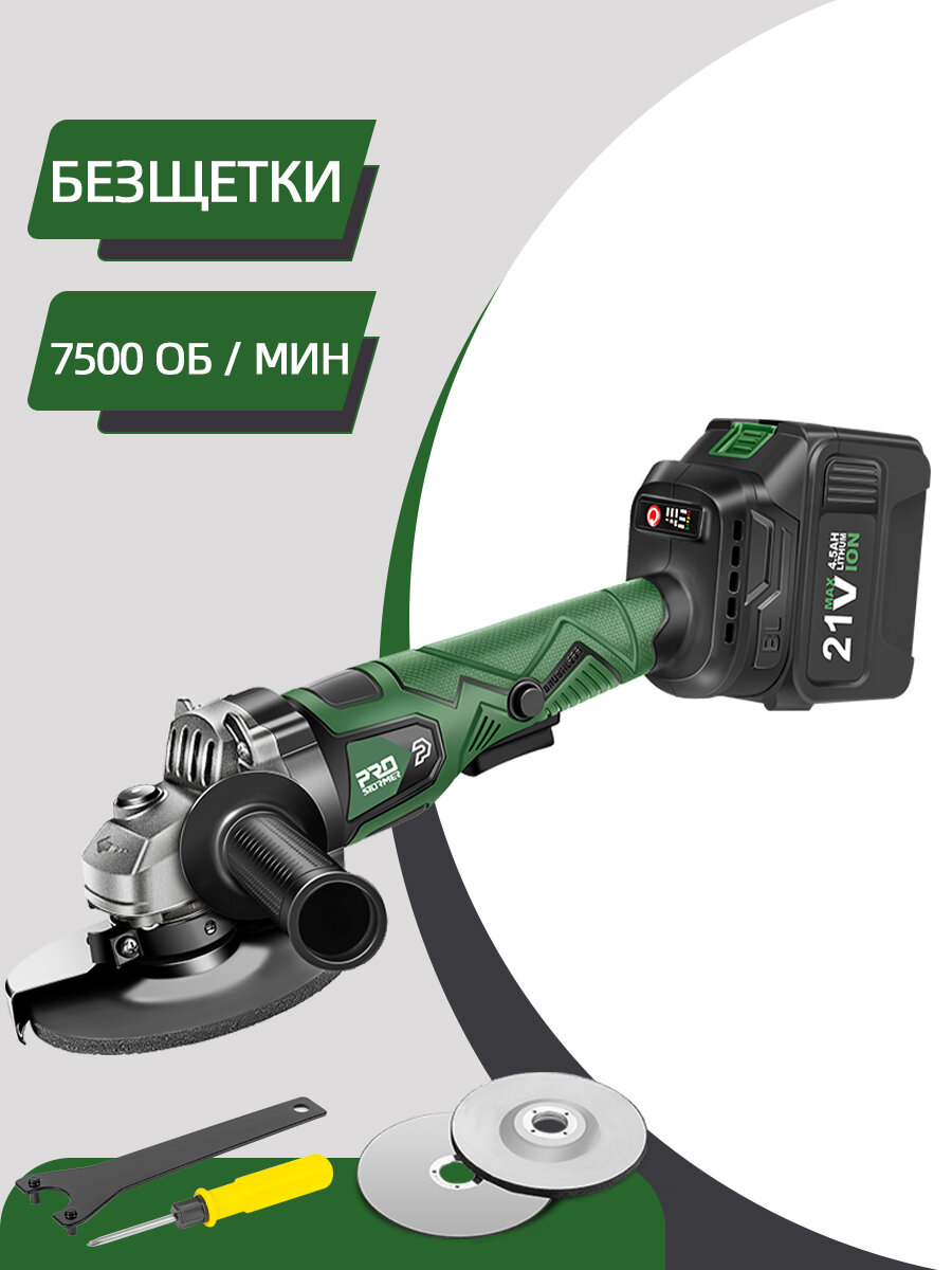 Купить Безщёточная угловая мельница, 21 В, 125 мм, 4000 мАч литий — ионная батарея*2, Ящик для хранения, PROSTORMER с доставкой по всей России.
