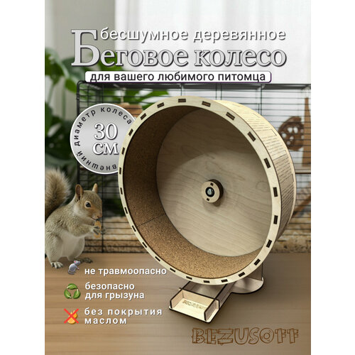 Колесо изготовлено из прочного и экологически чистого материала – дерева, что гарантирует долговечность и безопасность использования. Диаметр колеса составляет 30 см, что обеспечивает достаточное пространство для активного движения вашего питомца.