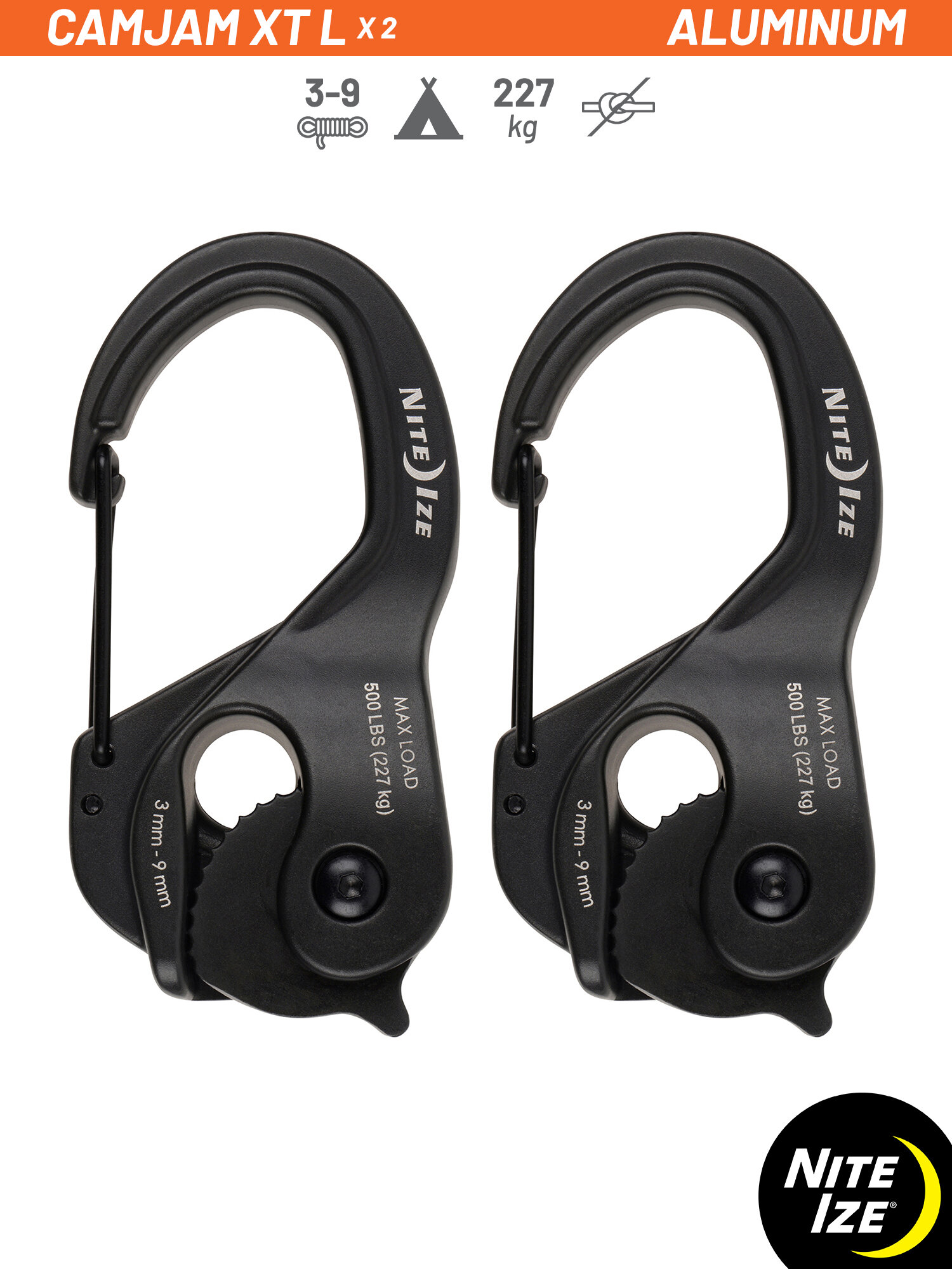 Безузловой натяжитель CamJam - это прочный алюминиевый карабин с блокирующим механизмом, предназначенный для моментального натяжения и фиксации шнура без необходимости связывания узлов.