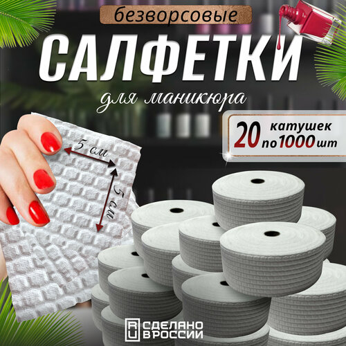 Купить Безворсовые салфетки для маникюра 20 катушек по 1000 шт, плотные и прочные 5 х 5 см с доставкой по всей России.