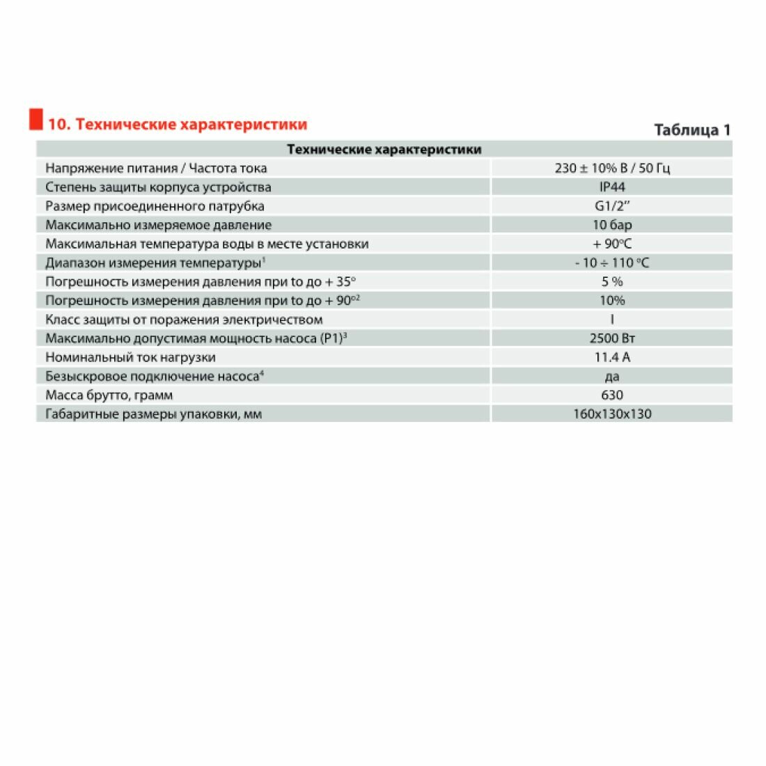 - Погрешность измерения давления при температуре воды до 35ᵒС 5%