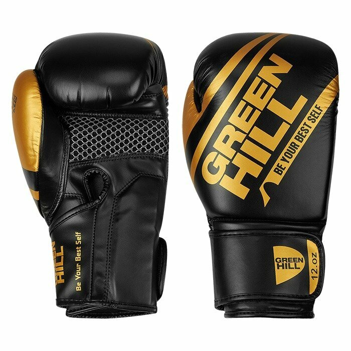 Купить BGU-2308 Боксерские перчатки UNIQUE черно-золотые — Green Hill — Черный — 16 oz с доставкой по всей России.