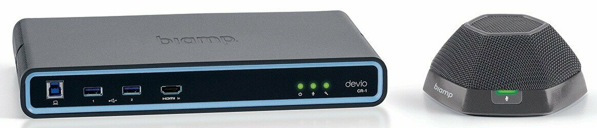Купить Biamp Devio CR-1T Цифровая система для малых переговорных комнат. В комплект поставки входят: базовое устройство CR-1, один настольный микрофон DTM-1 с доставкой по всей России.