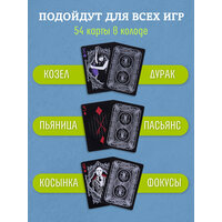 Материал карт устойчив к износу и подходит для игр: покер, блэк джек или дурака. Текстура поверхности обеспечивает плавное скольжение и удобство тасования. Прекрасный выбор для тех, кто ценит необычные коллекции или ищет стильный подарок для любителей настольных игр.