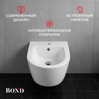 Высококачественное подвесное биде овальное с переливом BOND Oval F01-20 имеет стильный дизайн. Оно изготовлено из сантехнического фарфора, покрытого утолщённым слоем стекловидной глазури, которая защищает изделие от скапливания бактерий и выцветания, придаёт блеск поверхности и обеспечивает лёгкий уход за ним. Внешняя форма изделия не позволяет скапливаться пыли, а внутренняя - гарантирует простой уход и отсутствие неприятных запахов. Биде имеет встроенный перелив, защищающий от вытекания воды наружу. Подвесное биде со скрытым креплением сочетается с подвесным унитазом этой серии и прекрасно впишется в современные интерьерные решения.