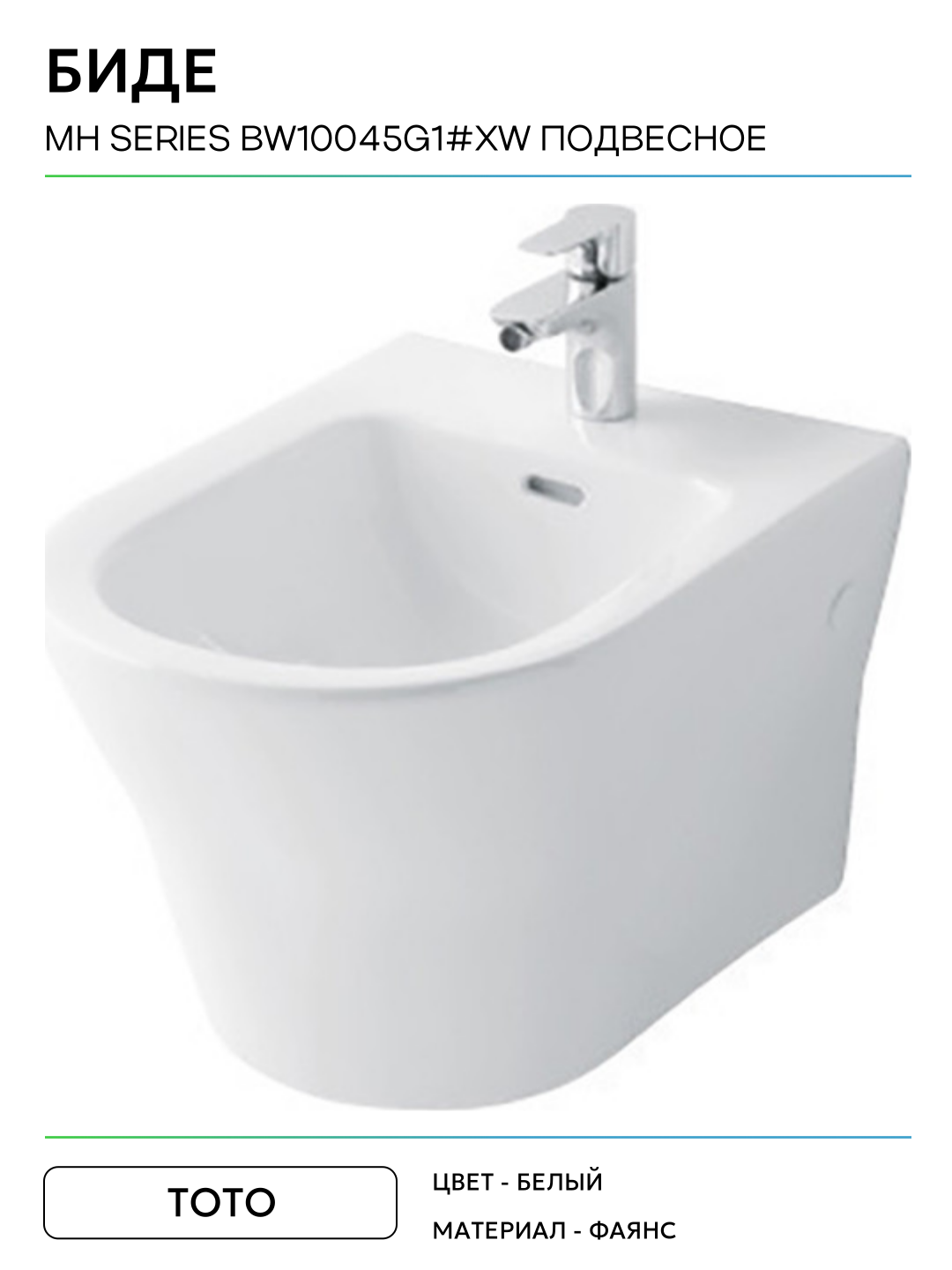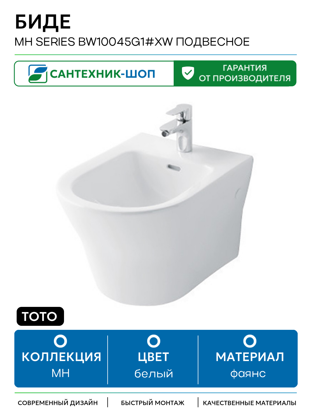 Биде Toto MH series BW10045G1#XW подвесное Белое глянцевое фаянс подвесной Япония: сравнение цен, характеристики, фото, актуальное наличие и цены.
