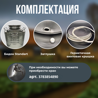 Среди преимуществ бидона из нержавейки 100 л стоит отметить: - Удобные ручки, которые упрощают процесс переноски и транспортировки. - Отверстие с заглушкой в нижней части емкости, которое можно заменить на кран для удобного слива содержимого. - Герметичная крышка с резьбой и силиконовой прокладкой, обеспечивающая надежное закрытие и защиту от загрязнений.