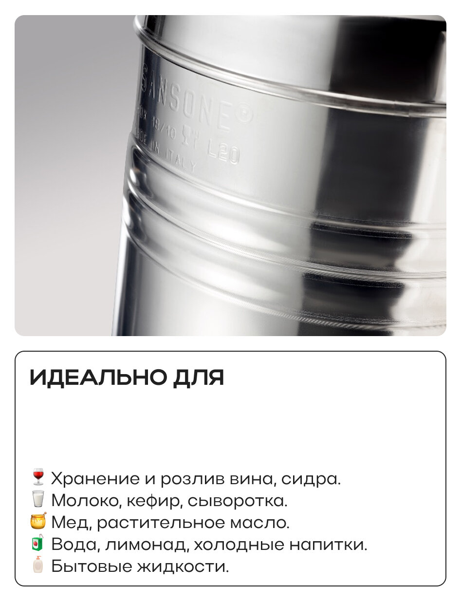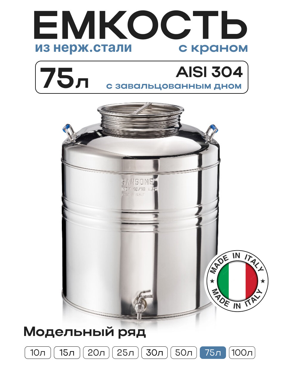Бидон (фляга) из нержавеющей стали 75 л с краном от Sansone c завальцованным дном: сравнение цен, характеристики, фото, актуальное наличие и цены.