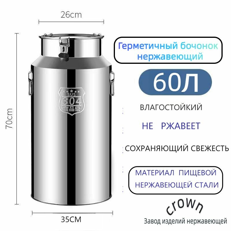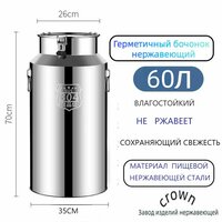 Бидон из нержавеющей стали 60 литров с герметичной крышкой для хранения и транспортировки продуктов, меда, молока, вина и круп: сравнение цен, характеристики, фото, актуальное наличие и цены.