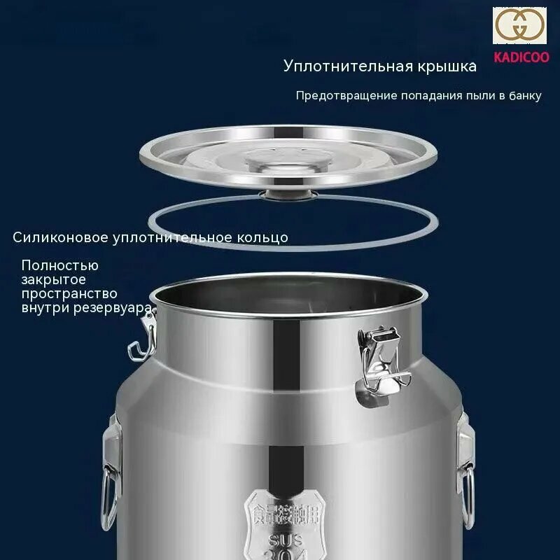 Ведро-контейнер для транспортировки пищи. Контейнер выполнен из пищевой нержавеющей стали , Его также можно использовать для хранения меда, молока, вина, риса, круп и т. д. Бочка хорошо герметизирована и позволяет хорошо хранить продукты, гарантируя, что они не повредятся. Такие контейнеры также используются в больницах, стационарах, детских садах и для отдыха, как ланч-боксы при выезде на природу. Контейнер выполнен в виде емкости с уплотнительной крышкой. Крышка герметично закрывает контейнер за счет высококачественной силиконовой прокладки и усиленных клипсов (3 шт.). Оснащен ручкой для переноса. Конструкция емкости легко и удобно моется, уплотнительную резинку так же можно легко снять и промыть чистой водой. Красивые продукты КомплектацияБочонок из нержавеющей стали* 1, упаковочная коробка *1 M992