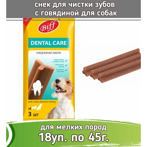 Biff Dental Care - это жевательный снек, необходимый для ежедневного ухода за ротовой полостью собак. Особая текстура и форма способствуют эффективному снятию мягкого зубного налета, снижению риска образования зубного камня и массажу десен. Фитокомплекс экстрактов растений предотвращает размножение вредных бактерий и освежает дыхание. В отличии от аналогов, в составе нет курицы, которая чаще всего вызывает аллергическую реакцию у питомца.