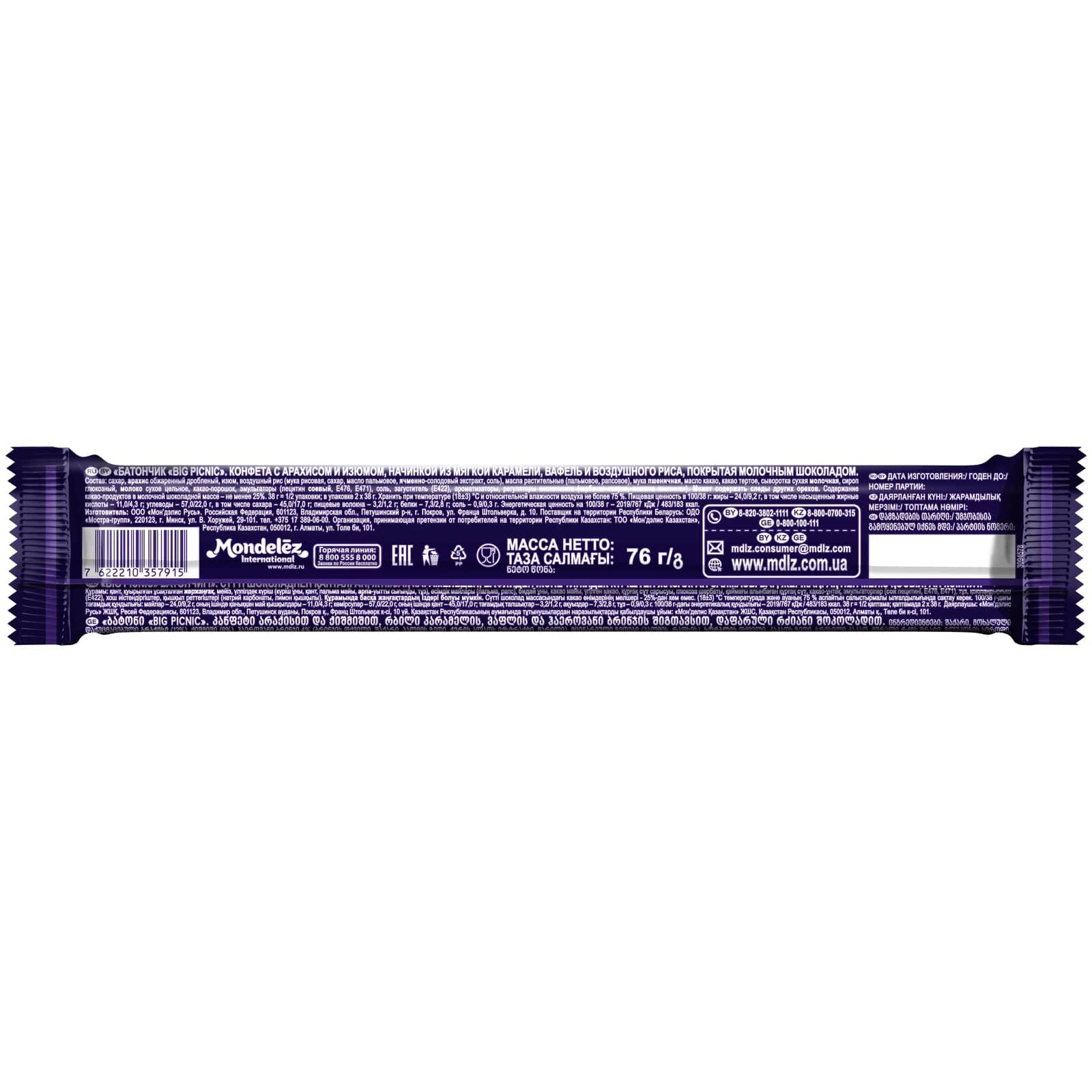 Купить Big Picnic батончик с арахисом и изюмом, начинкой из мягкой карамели, вафель и воздушного риса, покрытый молочным шоколадом, 76 г 6 шт с доставкой по всей России.