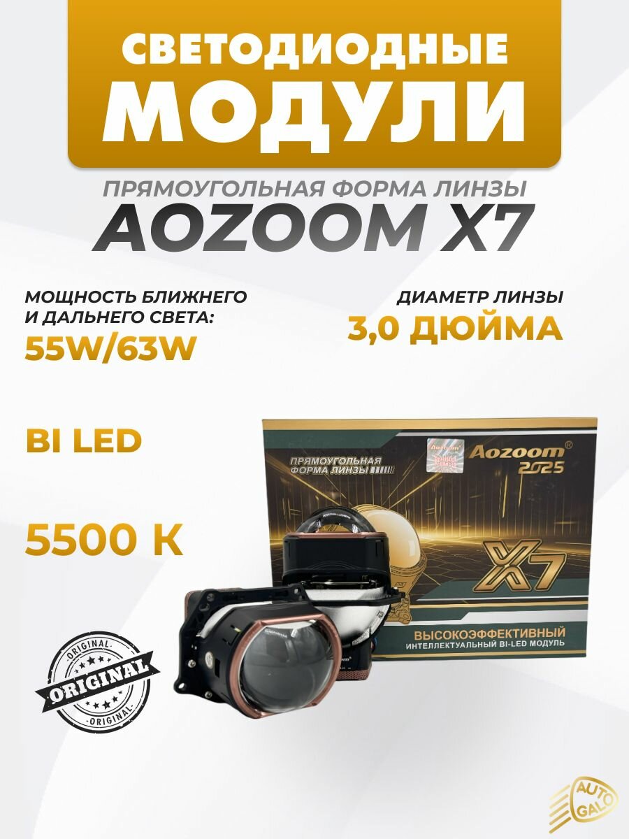 Купить Светодиодные модули дальнего/ближнего света Aozoom X7 2025 55W/63W 12V BI LED 3″ 5500K (2 линзы, комплект) с доставкой по всей России.