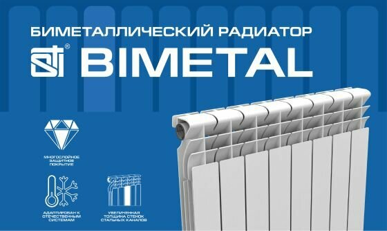 Купить Биметаллический радиатор STI Bimetal 500/100 10 сек. Площадь обогрева, 14 м² с доставкой по всей России.