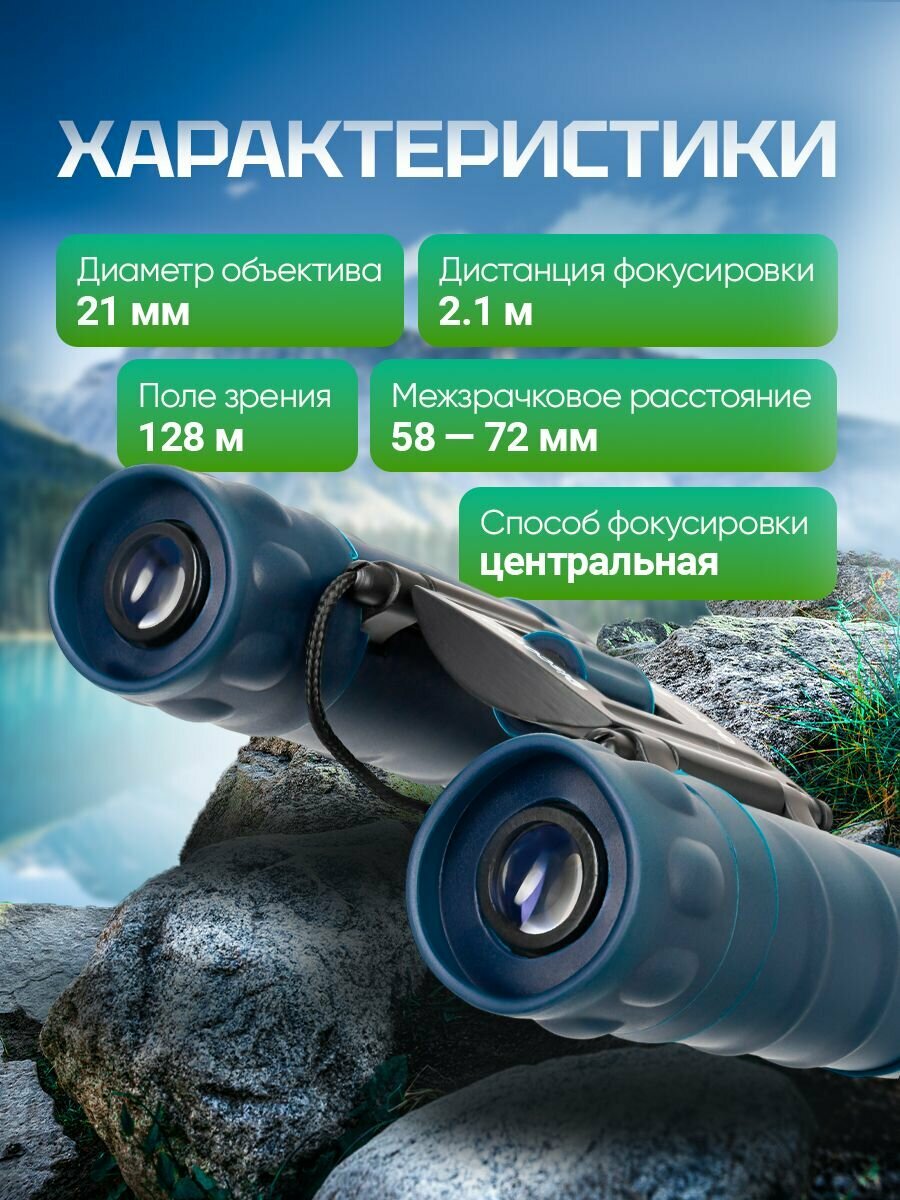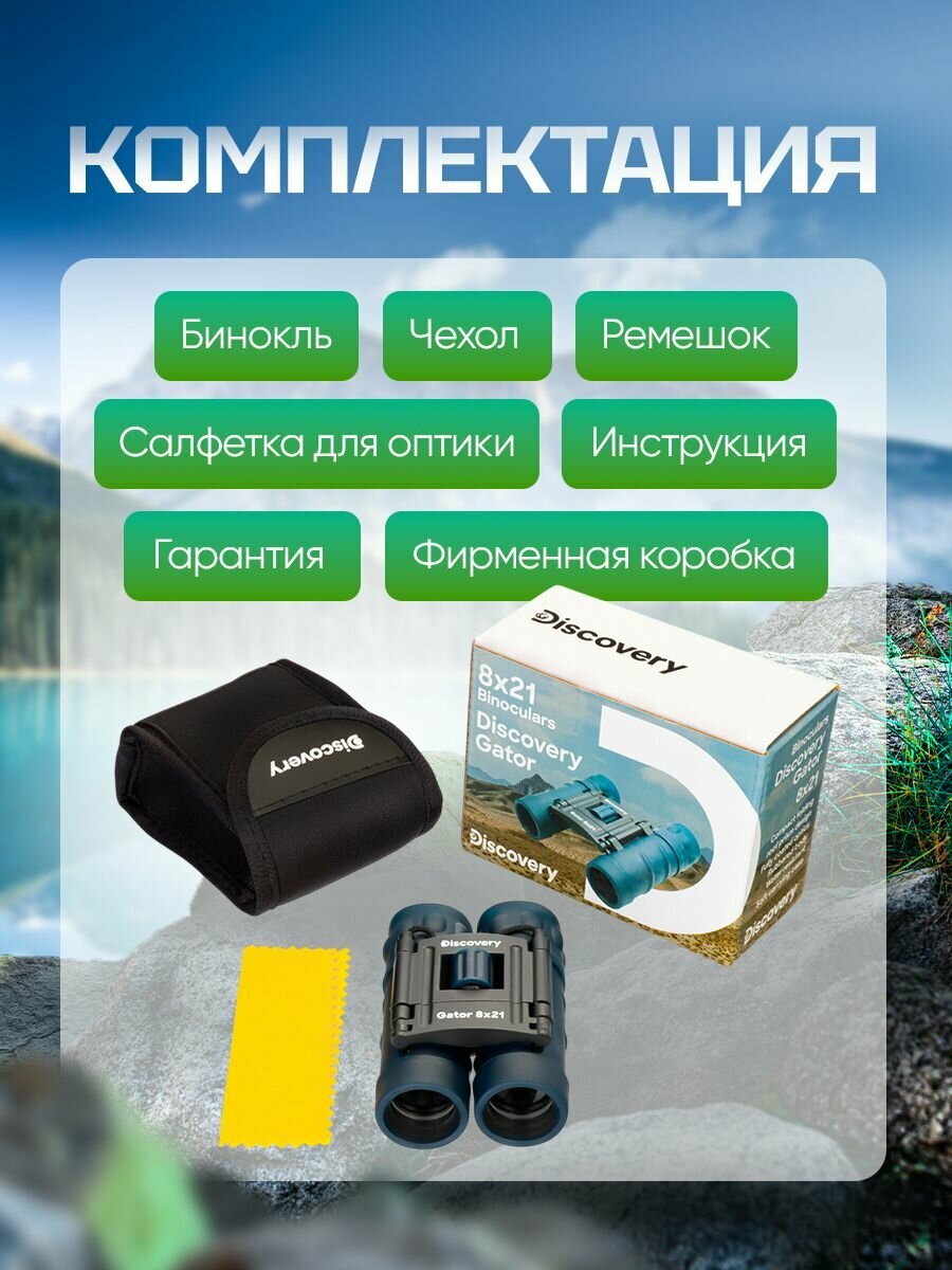 Перед вами туристический бинокль Discovery Gator 8x21, который удобно брать с собой на прогулки и в путешествия. Он небольшой и легкий, без труда помещается в рюкзак или сумку и не обременяет в дороге. Также он дает 8-кратное увеличение, что позволяет детально рассматривать сильно удаленные объекты, и обеспечивает хороший обзор. Поля зрения оптики вполне хватает для наблюдений за движущимися объектами, например спортсменами на стадионе или летящими в небе птицами.