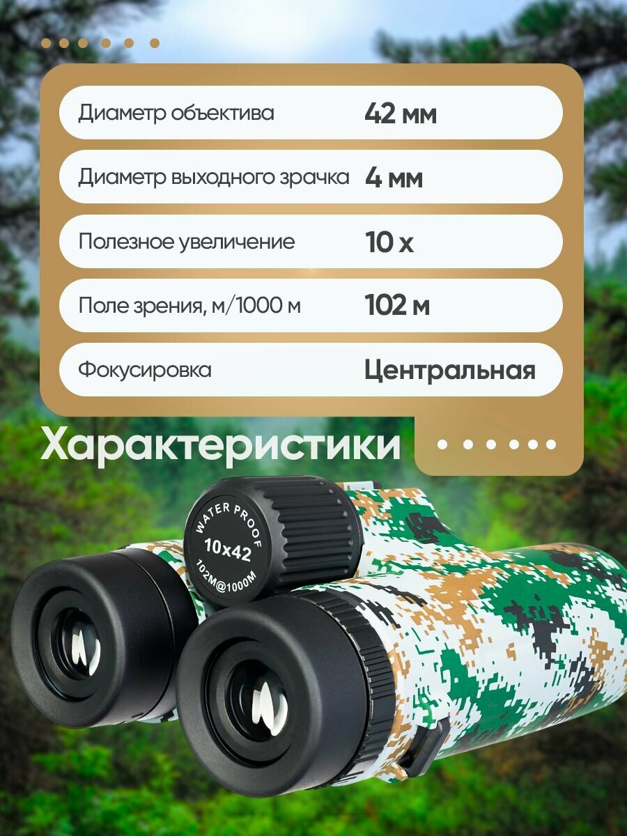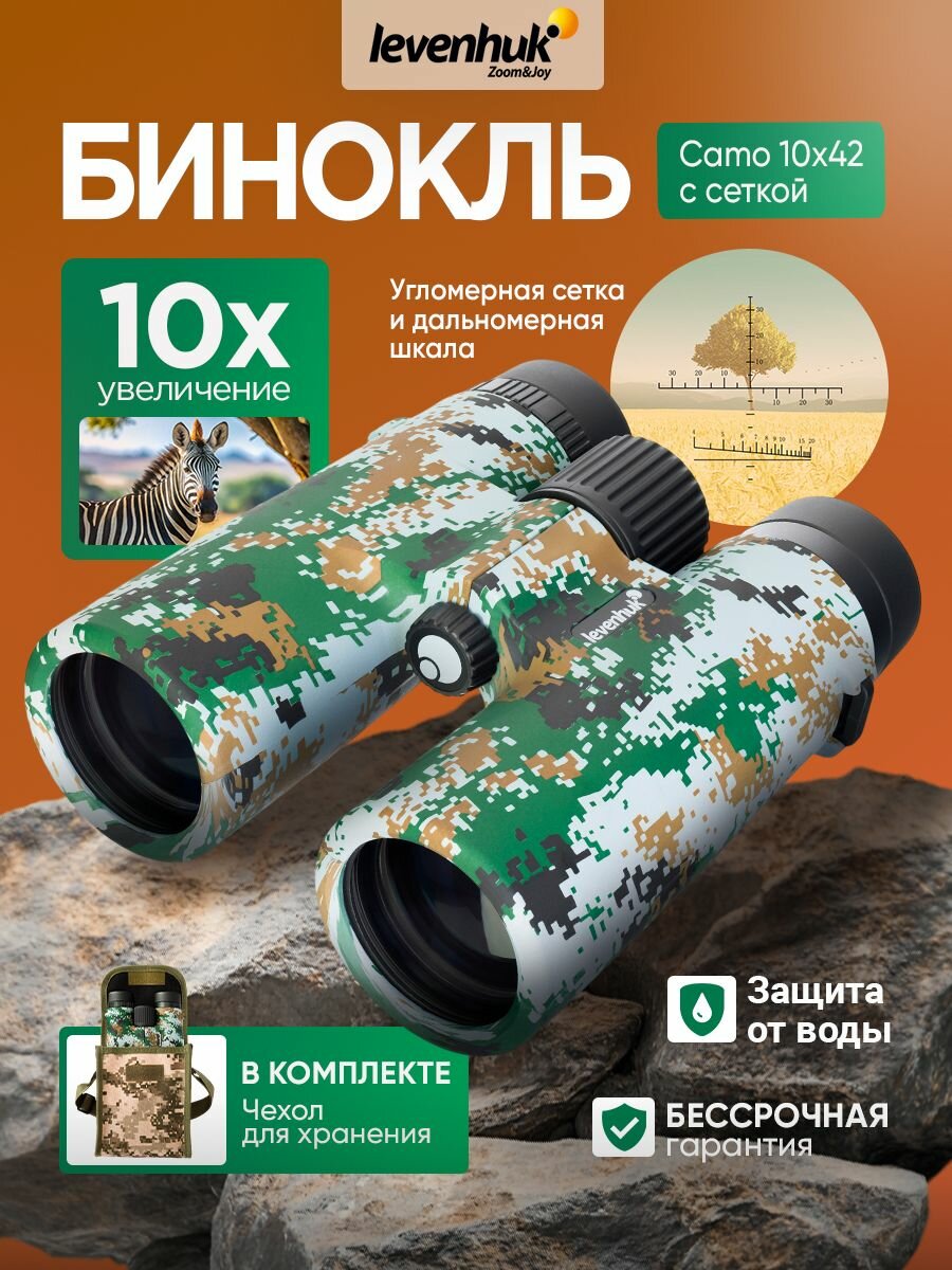 Бинокль Levenhuk Camo Dots 10×42 Мощный профессиональный для охоты: сравнение цен, характеристики, фото, актуальное наличие и цены.
