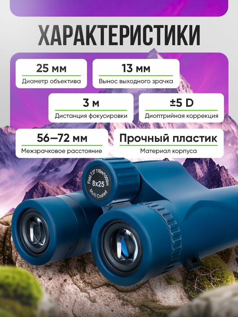 | Дополнительная информация | Туристический бинокль на roof-призмах |