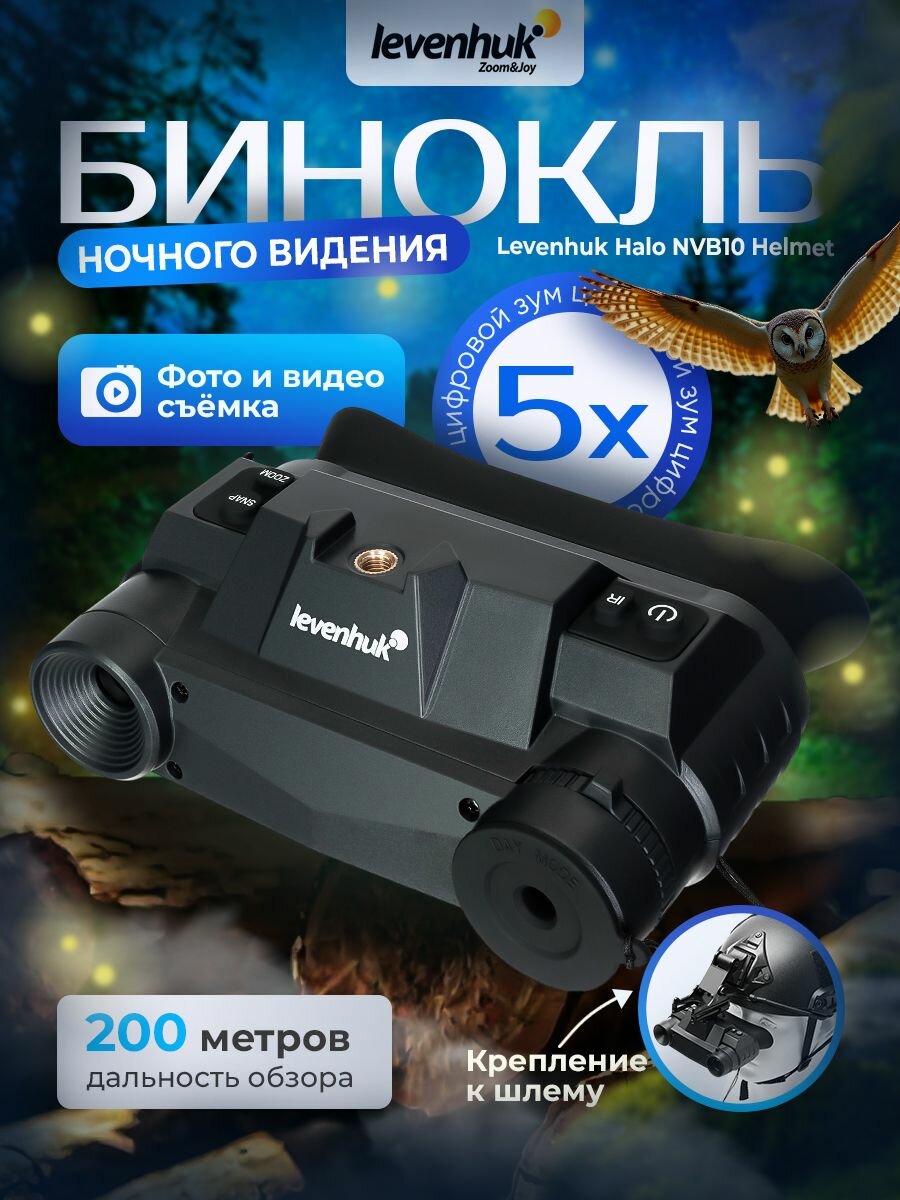Бинокуляр Levenhuk Halo NVB10 служит для ориентирования и наблюдений в полной темноте или при слабом свете, например, во время ночной охоты, охранных мероприятий, поисково-спасательных работ. Благодаря цифровому зуму 3,5х и сенсору 2 Мпикс прибор можно использовать и в дневное время в качестве бинокля. Оптика из оптического стекла с многослойным просветляющим покрытием обеспечивает качественную картинку, а инфракрасный осветитель увеличивает дальность обзора.